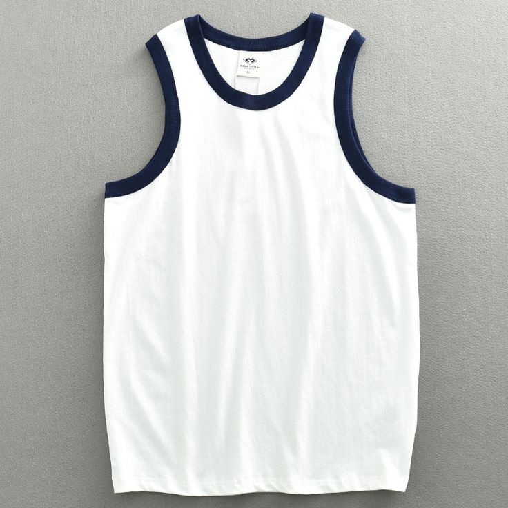 & Free ShippingA timeless white cotton tank top featuring a soft, breathable fit and crisp navy blue contrast binding on the neck and armholes. Essential for summer comfort.